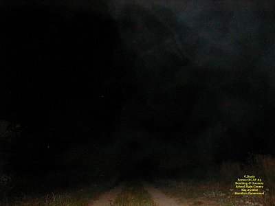 To see the full size image, click on the picture above. Just moments after the other 3 pictures were taken I took a picture of the road we were on and got no orbs, but I did get an ecto mist that was very near. I took this picture because we all felt a very cold spot along with a feeling of something near us and we kept seeing shadows moving around us.