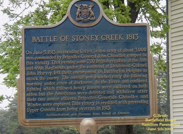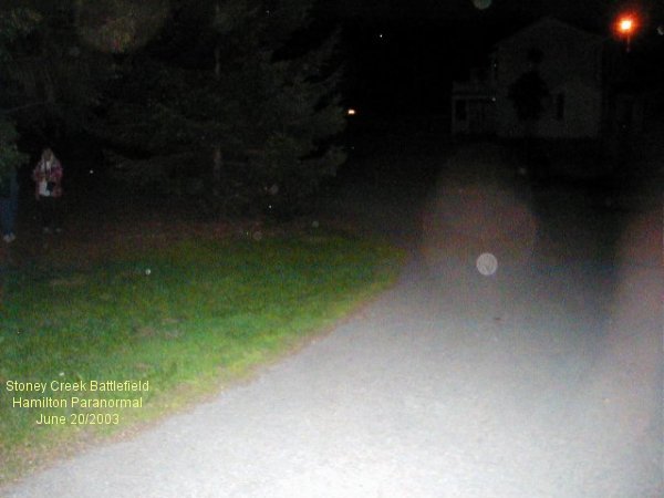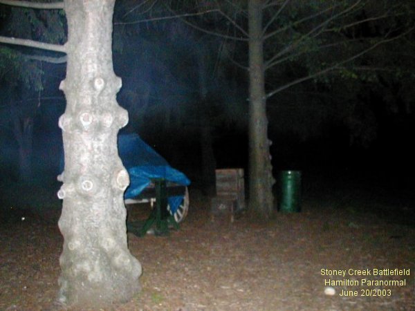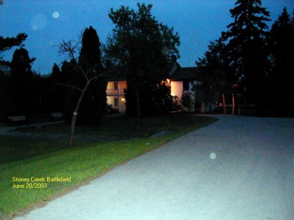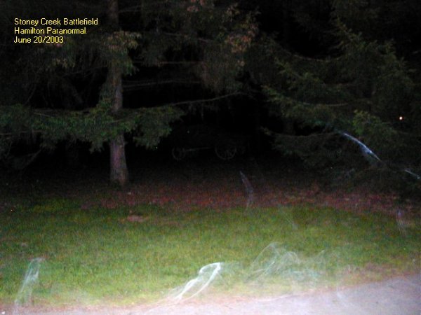 ![]() Stoney Creek Ontario The War of 1812 ![]() A picture of the historical sign that sits by the Gage homestead with a brief description of what had happened during the war 1812. ![]() On June 20th/2003 we went on another investigation with Regan. When we arrived at the park we noticed that some of the wagons for the re-enactment were by the bridge that runs off to the right of the park. Our guest wanted to take some pictures of the castle so as we headed for the castle I stopped by the little garden walkway along the Gage house and took this picture. What is unique about this photo is that it was dusk and yet there was some activity in the area showing in orb form even without the use of a flash. ![]() After taking many photos around the castle we headed for the other side of the park. We walked across the bridge that leads to the East parking lot and then there was a cracking noise coming from the creek that goes under the bridge. At first I had thought it was nothing more than a raccoon. All of a sudden I had the urge to take a photo near the curve of the road leading to one of the re-enactment wagons that was parked there. In this photo you can see what appears as a woman in a white gown coming up from the ground by the edge of the road. You can almost make out a face in this apparition complete with what appears as the spirit's arms swinging back behind her head. ![]() After taking the last picture I took about 8 more with nothing showing in them. I just had to go back and take another photo where I had caught this woman in a white gown. This time I managed to get some ecto mist with what appears as some energy strings to the right streaking by the tree. ![]() Over by a wagon that was parked by the creek with a blue tarp over it I had a strange feeling of something near and took this photo. Up just above the wagon that was parked you can see some ecto plasm forming. ![]() Just before we went to leave I got this bad headache on a certain part of the driveway. I took this picture and got some red energy near me. This is not a good thing to come across. Moments later as I moved away the headache went away. We plan on returning to the park at a later date for another investigation, we recommend this place to anyone that has an interest in capturing spirit activity on film. Or just to explore the park and read many of the signs in and around the area. Battlefield Park is interesting to say the least and can be enjoyed by everyone. June/2003 Oct 25/2003 Oct 25/2003 Oct 25/2003