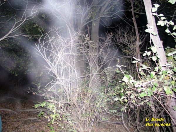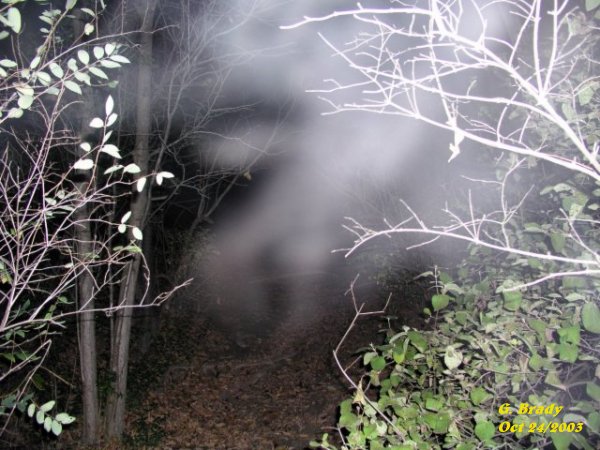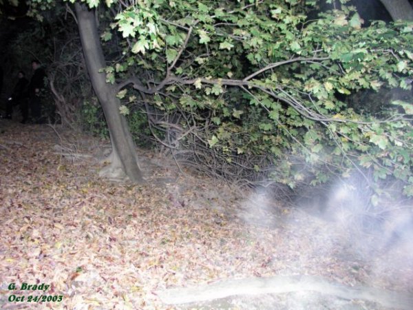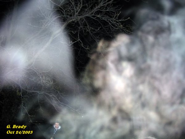 ![]() ![]() I took this picture about ten minutes later, in the same area, and caught some very strong activity. ![]() Looking at this photo for a minute or so, you can see an image of a man that seems to be falling backwards. ![]() This was an interesting shot of an energy form that seemed to be coming from the small tree to my left. ![]() At this point we started to go up a steep trail that led up to the back of the castle. Cathy being ahead of me, as seen in the picture, shows an energy form attaching itself to her as she made her way up the trail. ![]() The ecto mist that was forming to the right of this picture with Chad just up ahead on the trail, almost looks as if the mist had a face within it. ![]() At this point I was halfway up the trail when I captured this energy form just to my right. ![]() June/2003 Oct 24/2003 (1) Oct 24/2003 (2) Oct 24/2003 (3)