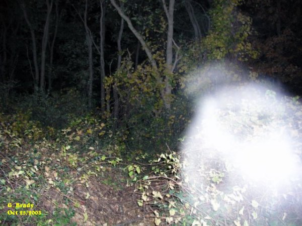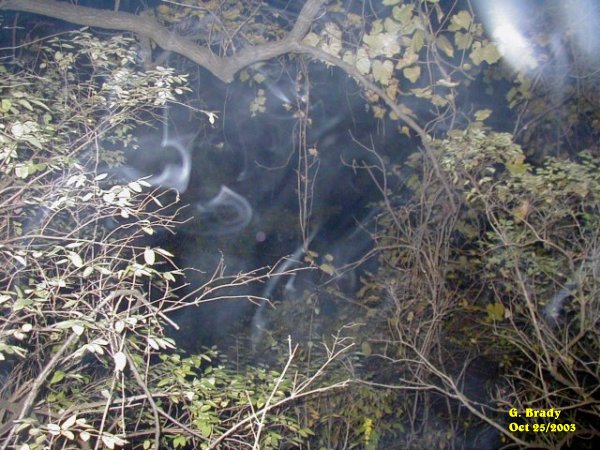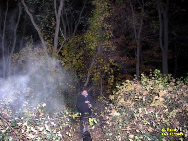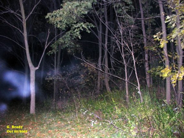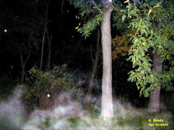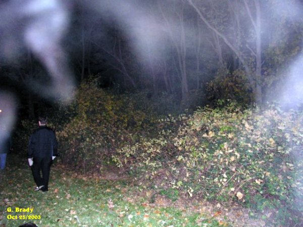 ![]() ![]() Paul was at the back of the castle when I took this picture of a spirit trying to get his attention by hovering just above his head. ![]() Chad was down on another trail checking out something he had found. Unnoticed by Chad he had company trying to take a look. ![]() There are bushes in the back part of the castle. In this photo it almost appears as an image of a man bending over as though looking for something. ![]() Paul seemed to be a magnet for the spirits around the castle this night. As you can see blue ecto plasm seemed to be following him. ![]() To the left, a very strong spirit making its presence known. This picture was taken up behind the castle. ![]() I got closer to the tree line and took this pic. Just ahead of me was some energy strands of ecto. ![]() Again some strong energy was forming along the ground just ahead of me. Battlefield Park is an interesting place to investigate. This night was a good night for activity in the park and around the castle. I found the side trail that runs by the creek to have a lot of activity to the area, complete with something moving in the bushes as though following me as I walked along. Every now and then we could hear faint whispers along the trail. We will be returning soon to do another investigation here at Stoney Creek Battlefield. June/2003 Oct 24/2003 (1) Oct 24/2003 (2) Oct 24/2003 (3)