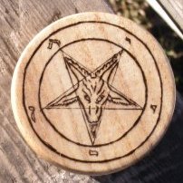 This gothic style image features a goat head inside of a pentagram. It stands approximately 2" tall and measures approximately 2" across. This box would make quite a conversation piece. Give it as a gift or keep it for yourself.