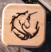 ![]() ![]() This trinket box sports a beautiful unicorn resting as it guards your treasures. It stands approximately 2" tall and measures approximately 2 1/2" across. The unicorn has always been the symbol of purity and love. What better gift for that special person in your life. $8