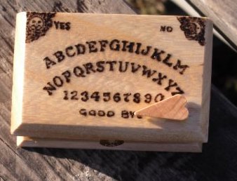 ![]() ![]() ![]() This box has a miniature ouija board image burned into the top. It stands approximately 2" tall and measures approximately 2 1/2" across. Some have a miniature planchette fastened to the top. This would make quite the conversation piece. Buy it for yourself or give it as a gift. $8