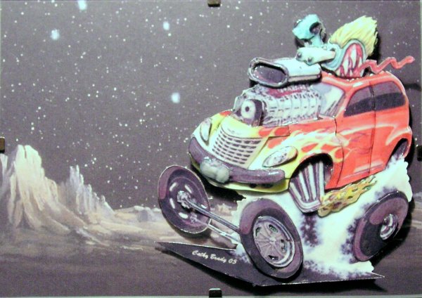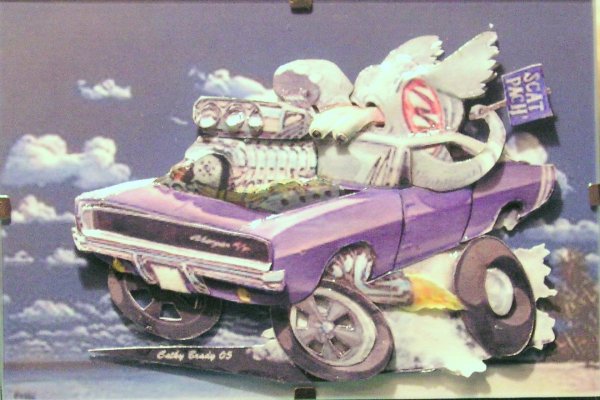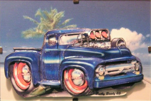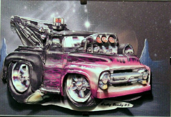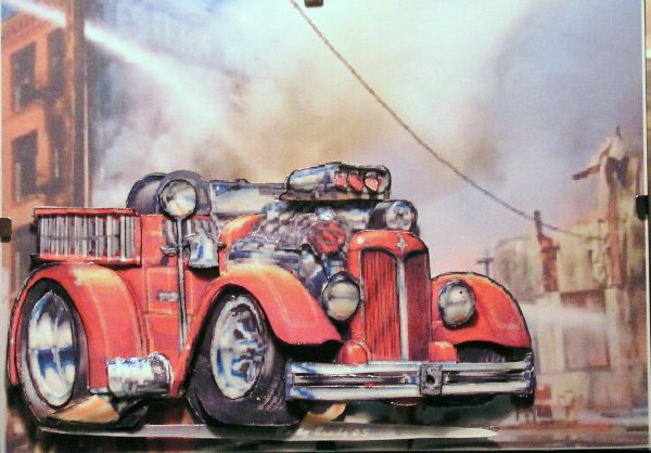 Here you will find some of our Paper Tole prints of cars we have done. Some car scenes have been put onto a frame ready for hanging or to display on a desk. Any one of these cars would be a conversation piece to show in your home or office. We hope that you enjoy your visit to this section of fine prints we have hand crafted into a 3D look. ![]() "PT Gasser" 2001 Chrysler PT Cruiser, flamed paint job, halibrand spindle mount mags, polished blower, fuel injection, bug catcher scoop, lit-up zoomie pipes! colours available in red, silver, blue, black , gold. This picture is mounted on a 5X7 frame with a great looking background Cost $30.00 ![]() "1956 F100 Tow truck" 1956 F100 Tow truck Need a fast tow? This picture is mounted on a 4" X 6" picture frame with a space look background. Cost $25.00 ![]() "1937 Seagrave Fire Truck " 1937 Seagrave Fire Truck This fire truck is pumped up and ready to go! This picture is mounted on a 5X7 picture frame with a fire scene in the background. Cost $30.00 ![]() "1928 Ford Model A Police Paddy Wagon Pickup" 1928 Ford Model A Police Paddy Wagon Pickup What you going to do when they come for you? Bad Boy , Bad Boy! This picture is mounted on a 4" X 6" picture frame with a broken glass background image. Cost $25.00 ![]() "FULL CHARGE" 1968 Dodge Charger R/T, scat pack Bumble Bee stripes, 5 spoke wheels, polished blower with fuel injection and a bird catcher scoop, flame throwing chrome headers and HEMI power (elephant motor) CHARGING like a wild elephant! comes in colours of red, blue, black,yellow and purple. This picture is mounted on a 4" X 6" picture frame. Cost $25.00 ![]() This picture is mounted on a 4" X 6" picture frame. Cost $25.00 If you wish to purchase this fine piece of art please email us at sales@hamiltonparanormal.com |