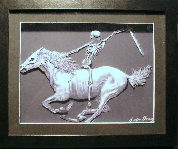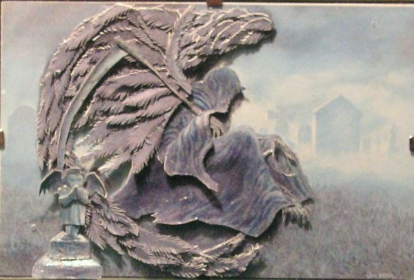 These pictures would be a one of a kind print to own and they are sure to raise a couple of eyebrows:) The pictures made in this section have an awe about them and yet most folks that have seen these pictures ask how much? There seems to be a morbid sense, if you will, to own one of these fine hand crafted pictures. Please enjoy your visit while viewing what we have to offer in our crypt...... ![]() "The Thinking Grim Reaper" Signed and Dated by Myself It appears as though the Grim Reaper is deep in thought sitting in a graveyard. Maybe wondering where to go next , or who is next to take a flight with him? This picture is mounted on a 4" X 6" frame with a graveyard scene as the backdrop. This would be a great conversation piece to own. Cost $25.00 ![]() "Rider of the Storm" Signed and Dated by Myself The picture sits in an 8" X 10" black frame with a black matte to compliment the picture. Yes I know, like this dude needs a compliment :) The rider of the storm is going over a city below on a moonlit night wielding a sword on a ghost horse. Yes I know the horse does not look very well fed, but hey, it is a great looking picture. This will sure raise a couple of eyebrows, but imagine the folks that will see it in your home or office and just stand there in awe. This picture has received great reviews with some folks and I am often asked how much for this piece of art. Cost $125.00 Please be sure to check back on more pictures being made in the future if you dare.... If you wish to purchase this fine piece of art please email us at sales@hamiltonparanormal.com |