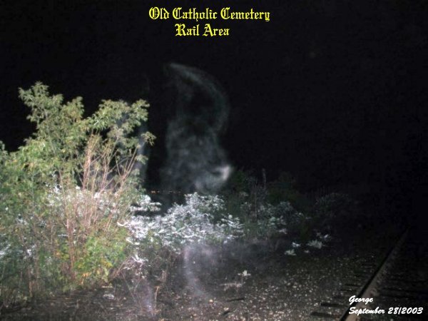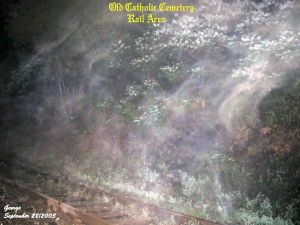 ![]() ![]() The person in the photo is Kenny. He had asked me to take a picture around him. He had said he found a very cold spot and had the sense of a spider web effect around his face. Sure enough he did have company with him as seen in this photo. ![]() In the center of this picture you can see some strands of energy by the bush. But just above the bush there seemed to be a head starting to form. ![]() Now this photo was very interesting in the fact that it shows, on the mountainside, a flow of energy in vibrant color coming down. It almost looks like a waterfall of spiritual energy. The many colors to this entity was amazing. ![]() In the next three photos you will see an energy form go for the old phone box. In this shot there was something starting to form that appeared to be going for the box. ![]() ![]() In this picture the energy form seemed to have got what it wanted and started to move away from the box. The area that runs between the two train wrecks holds a lot of activity. Is it the spirits that once occupied the old cemetery showing us they are unsettled because their final resting place has been disturbed? We cannot answer that question with any certainty, but we do know there are spirits in the area that are trying to communicate with anyone that will stop and listen. The entire rail line between the two train wrecks hold a lot of activity, and we do hope others will take the time to investigate this area and come up with their own conclusions. We will be back in the future to conduct many more investigations to this area. ![]() History/Sept 28/2003 Sept 28/2003 ![]() ![]() ![]() |