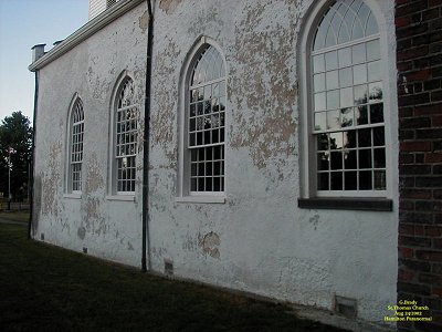 To see the full size image, click on the picture above. Please note the windows. This shot was taken with the sun to my back as I was standing in the cemetery facing the right side of the church. The cemetery has graves dating back to the early 1800's.