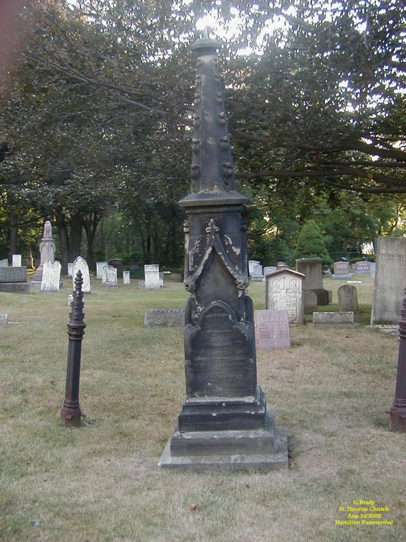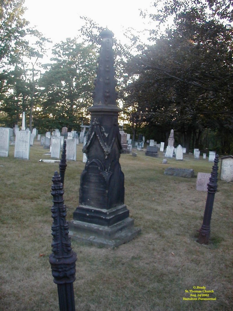 To see the full size image, click on the picture above. Mike directed us to what is reported to be a witch's grave and he pointed out that there used to be a chain around the head stone. It is said that whoever should step inside the chain would be cursed. Of course he told us this AFTER we went for a closer look to see who was buried beneath this stone...... And as luck would have it we did get a blow out on the 401 on our way home......There just could be some truth to this legend.