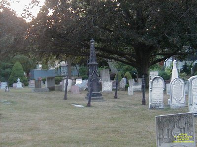 To see the full size image, click on the picture above. Earlier in the day when we were here the sun was shining through the trees along the edge of the cemetery, but there seemed to be a mist coming through. The big white tomb marker to your right drew us to it for some reason earlier and when we put our hands near it we got the static feelings coming from the stone. When we returned and took this shot there was a big orb right beside the tombstone. And when we went up to it we discovered heat coming from it along with a spider web sensation around the arms and face.