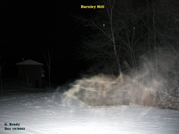 ![]() Date Dec 19/2003 Clear Night The pictures that are shown in this investigation have what we believe to be real paranormal content. This of course is our OPINION ONLY. It is up to the individual to decide for themselves if what we had captured on camera is real or not! All pictures taken were witnessed by those in attendance while they were still on the camera. With that said we hope you, the viewer, enjoy your visit to our site. The Darnley Mill has always been a great place to investigate the paranormal, as it offers so much for the investigator to explore. Once again we find ourselves back at this place that holds so much history of times gone by. We could never tire of this place known as the Darnley Mill...... ![]() This photo has some ecto mist forming to my left, on the road that leads up to the old Crooks homestead. ![]() Up at the vacant area where the Crooks Homestead would have been located was some treated beams that were bundled neatly to the one side of the lot. In the photo you will notice some energy forms taking shape. If you look closely to the right hand side of the picture you can make out what appears as a woman on a horse by the beams. On the beams themselves you can make out what appears as a dog or wolf laying down. ![]() Before I took this photo I had a sense of something in a shadow form moving towards me. This photo to me shows a winged creature, maybe that of a demon. You can make out the head in the center, then what appears to be a wing span from both sides of the head itself coming towards me. ![]() It almost appears as though this young lady (Alicia) was trying to get whatever spirit was around her to go away by flapping her arms. Little did she know that she had a friendly spirit around her in ecto form. ![]() Over by the water control device this image of an energy form appears to be that of some large animal heading towards the trees. Notice the amount of energy from this form. ![]() Over by the front gate that leads to the Darnley Mill you can see a swirl of ecto mist in the area. ![]() Cindy had captured this picture of blue ecto plasm of a ghost dog that appears to be resting on something in ecto form. The blue dog has its paws up resting its head on the ecto form taking shape. ![]() Cindy had taken this picture of what appears to be a dragon's head or demon's head in the same area where I had managed to capture mine earlier in the night. If you blow the picture up you can make out the eyes of the creature, complete with the pupil, deep set into the head. ![]() Darnley History May 20, 2002 June & July, 2002-3 (1) June & July, 2002-3 (2) June & July, 2002-3 (3) August, 2003 (1) August, 2003 (2) August, 2003 (3) September, 2003 (1) September, 2003 (2) October 12-13, 2003 (1) October 12-13, 2003 (2) October 19, 2003 (1) October 19, 2003 (2) October 30-31, 2003 (1) October 30-31, 2003 (2) November 2, 2003 (1) November 2, 2003 (2) November 9, 2003 (1) November 9, 2003 (2) November 15, 2003 (1) November 15, 2003 (2) December 19, 2003 (1) December 19, 2003 (2) March 27, 2004 April 17, 2004 (1) April 17, 2004 (2) May 21, 2004 (1) May 21, 2004 (2) May 28, 2004 (1) May 28, 2004 (2) May 29, 2004 (1) May 29, 2004 (2) May 29, 2004 (3) May 29, 2004 (4) June 5, 2004 (1) June 5, 2004 (2) July 9, 2004 July 30, 2004 August 7, 2004 August 5, 2005 August 12, 2005 September 3, 2005 (1) September 3, 2005 (2) September 3, 2005 (3) September 9, 2005 October 7, 2005 ![]() ![]() ![]() |