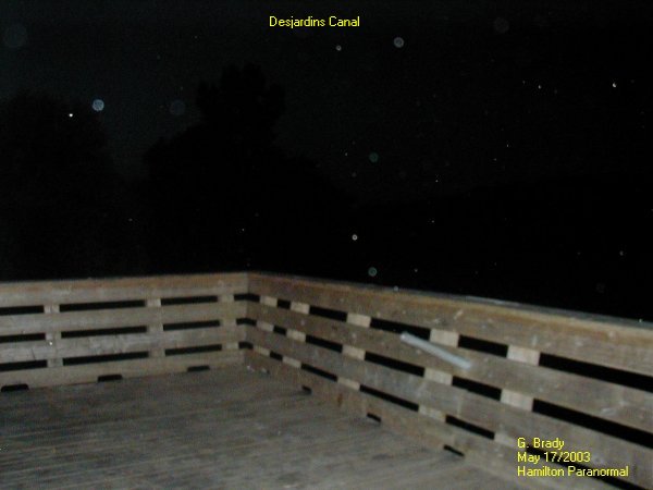 ![]() ![]() At the end of the walkway facing the Hamilton harbor I took a pic and got a few orbs in the area. The smaller bright objects are insects flying about. ![]() On the other side of the pier was some more ORBS hovering over the mouth of the canal. ![]() In this picture you can see a large ORB hovering above the harbor looking towards the city of Hamilton. You can also see a few photogenic bugs flying by us. We will conduct another investigation sometime this year. If anyone should go down to the canal the walkway is beautiful both during the day and at night. Desjardins Canal Page 2 ![]() ![]() ![]() ![]() |