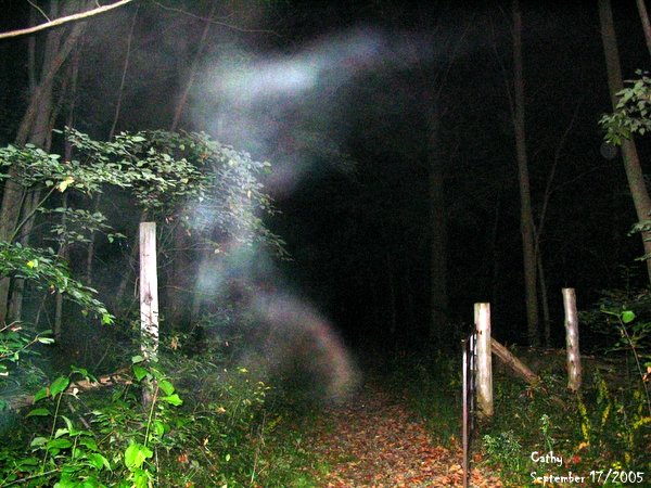![]() ![]() I had gone out of the mill and wanted to take some pictures around the rail trail and the road that lead down. I was with some other folks and we all heard what sounded like the shuffling of feet across the dirt in front of the lower gate. I took a picture towards where the sound was coming from and caught this image of what appears as a man standing at the gate complete with arms and legs, but no head. This energy form had a lot of red to it that would indicate a spirit form that was not very happy about something. ![]() I walked just beyond the gate and heard shuffling of feet again just up in front of me on the path. I took this picture and again another shot of ecto mist appeared right on the trail ahead of me. This also had some red to the energy form. ![]() Cathy had taken this picture of a vibrant energy form starting to take the shape of what appears as a person starting to form. This energy form had some vibrant red and yellows within it. ![]() In this photo it had a very strange ecto mist form in the color of purple that seemed to cover the inside of the mill near the back. Just before this photo was taken we all heard a faint scream followed by low voices talking. The voices we heard could not be made out to what was being said. ![]() To the right of the photo you can see what appears as a person taking on shape in ecto form, that appeared to be running with one arm up in the air. ![]() Another burst of energy to the right wall of the mill in ecto mist form. This form had some vibrant energy to it. ![]() Just as we were ready to leave for the night, Cathy had sensed something by the gate and took this picture. Again it appeared as something in spirit form had made its presence known, as indicated in this photo, standing by the gate. This nights investigation went very well we think. It had a lot of different things happen in the area with sounds that could not be explained as well seeing figures moving about the mill and the road as well as the rail trail. Hearing foot steps walking in the woods near the mill. Seeing mist that appeared out of nowhere before ones eyes, getting the feeling of being wrapped by a spider web around the arms and face. In our opinion this mill houses a lot for a paranormal investigation and we are sure to come back to conduct another investigation in the near future. ![]() Old German Mill History (1) Old German Mill History (2) September 17, 2005 (1) September 17, 2005 (2) September 25, 2005 (1) October 1, 2005 (1) October 1, 2005 (2) October 1, 2005 (3) October 1, 2005 (4) ![]() ![]() ![]() |