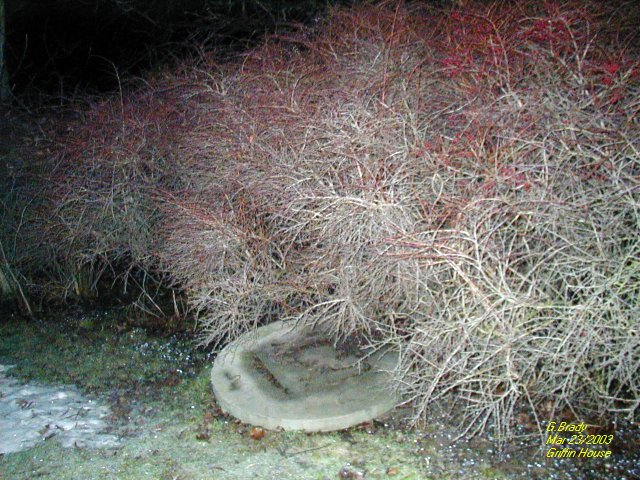 ![]() Ancaster, Ontario Canada ![]() A picture of a well that is located behind the house. This well when you are near it gives one a chill for no reason. Nothing of a paranormal nature in the photo, but we did want to show that a well is on the property, and when you are near the well at night one senses something watching you. The Griffin House is a great place to visit and we plan on returning to further our research of the property. Conditions Clear Night # In Group 3 Pics Taken 24 Pics Used 2 On Sept 6/2003 we just did an investigation over on Gravel Pit Road which isn't too far from the Griffin homestead. Chad was with us but he had only a few pictures left on his camera. When we had arrived we headed for the house. I took some pictures around the area and only came up with a few orb shots. Chad had found a lookout point at the back of the property so I went down to where this lookout point was. ![]() Cathy had got our attention and called us over to where the well was. In the above photo Cathy had a large red orb near the well. I never gave this much thought at the time but me and Chad headed for another trail we had found leading away from the house. So we went to investigate where this trail lead. The trail leads through a forest and comes to a cross road. I was geared up to go down the narrow road, but Chad wanted to head back, so it was at this point both Chad and I heard this high pitched growl or scream. It sounded to me as though it was a large jungle cat that let out a roar. It was very late in the evening when we heard this and when I remember the above photo, was that sound made by the spirit that Cathy had caught on camera? ![]() Just before leaving I took this picture of the front of the house and caught some orbs near the home. Were these the spirits of the past descendants of the Griffin Family? Maybe, but we will never know for sure. We will return to this place in the future for we believe that there is more to this place than what we got so far. Conditions Clear Night # In Group 14 Pics Taken 128 Pics Used 16 Note The pictures that are shown in this investigation have what we believe to be real paranormal content. This of course is our OPINION ONLY. It is up to the individual to decide for themselves if what we had captured on camera is real or not! All pictures taken were witnessed by those in attendance while they were still on the camera. With that said we hope you, the viewer, enjoy your visit to our site. ![]() We were over at the gravel Pit Road and just finished our investigation there and went over to the Griffin House on Mineral Springs Road in Ancaster.This was a group shot of some of the folks that were with us this night. Alicia wanted to try her hand at taking a few photos around the old homestead with my camera.... Alicia and her mom Cindy really need to get their own camera.....*L* ![]() Alicia had gone around to the back of the old home and took this picture. There was something right beside her when this picture was taken. ![]() Alicia went around to the back of the house and took this photo of some faint ecto mist covering the house. Griffin House Page 2 Griffin House Page 3 Griffin House Page 4
