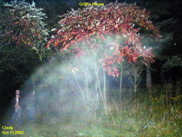 ![]() Ancaster, Ontario Canada ![]() Now in this photo it shows what looks like a full person forming to the right. There was no one around Alicia at the time this photo was taken. Whoever or whatever this was, in our opinion wanted to show itself to us. Also the person figure seemed to be leaning over looking in the direction of the camera. ![]() We all were just about ready to leave when Alicia wanted to take one final picture looking up the grass trail leading to the Griffin House. This photo shows another strange form taking shape. It appears to be coming from the ground and spreading out. ![]() Cathy had loaned her camera to Cindy for a little while. As Cindy was wandering around she said she felt that someone or something was close to her. She was quite surprised to see what she caught on the camera. ![]() Walking up near the back of the house Cindy took another picture. It looks as though she had a woman bending down towards her when the shot was taken. ![]() After getting a really cold chill near the outhouse Cindy clicked off another picture and got what appears to be ecto mist winding through the trees. ![]() Everyone was nearly ready to leave so Cindy took a few more pictures and got nothing. Then just as she was ready to hand the camera back to Cathy she took one more just to get a picture of her daughter Alicia. Boy wasn't she surprised to find Alicia covered in ecto mist and it seemed she was looking right up into it. The Griffin House in our opinion is not HAUNTED, but we do believe the area around this homestead has a lot of paranormal activity to it.The spirits here are trying to show us a story and every picture taken only adds to the many pieces of the puzzle of the paranormal world. Griffin House Page 2 Griffin House Page 3 Griffin House Page 4