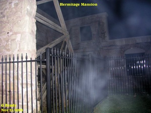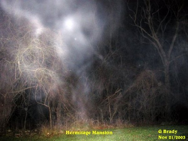 ![]() ![]() ![]() We had Max with us this night and he was barking at something from time to time. The group was standing near the center point at the back of the ruins and Max was growling as if protecting them. I had taken this photo and managed to capture something. A strong spirit energy forming over the group. ![]() In this photo it shows a light blue ecto plasm mist with what appears to be a head of an animal that was starting to form. ![]() Facing the back towards the wash house, yet close to the nursery, I caught this ecto form of what appears to be that of a large man. Near the top it looked like this figure had a hat on and was bending over slightly. ![]() Facing the inside of the mansion, some more energy forms where starting to show up. ![]() This ecto seems to have been forming into an animal of some description or that of a mystical creature. ![]() The back wall of the courtyard of the mansion seems to have had some strong energy near. It almost appeared the walls were smoldering as if they were on fire. ![]() Looking to the carriage house, I took this picture and caught some energy forms that seem to be hovering just above the ground. Notice the vibrant colors to the enegry within the mist forms.
