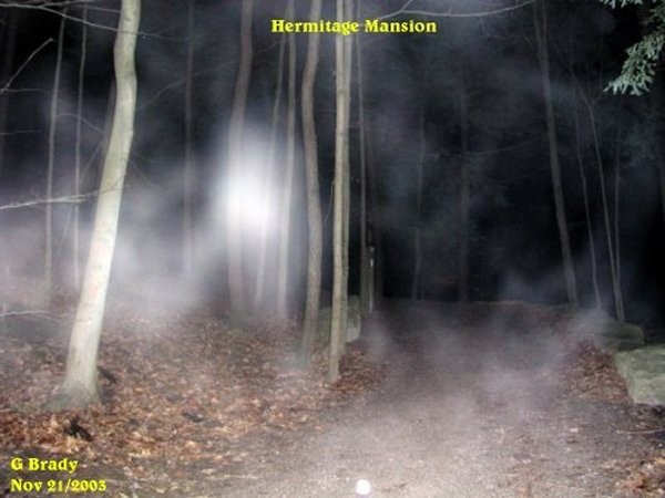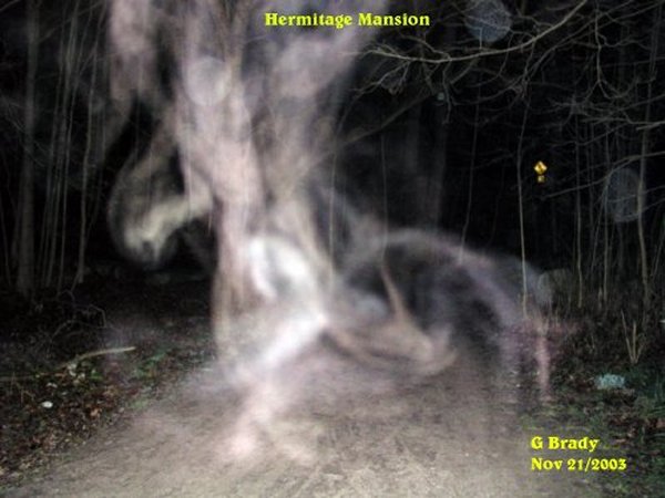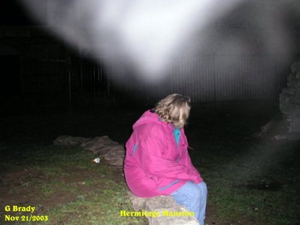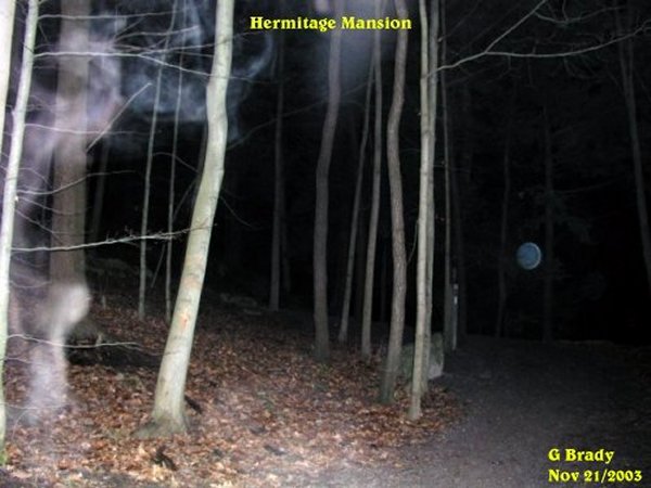 ![]() ![]() Cindy at this point felt very sick to her stomach for some reason. Was it the spirit that was hovering just overhead? Sometimes while doing an investigation it is not uncommon to get a severe headach or upset stomach or a heavy feeling to ones chest. ![]() While up at the hermitage Cathy took some pictures that were interesting like this photo showing some spirit activity around alleged hanging tree. ![]() This one shows some faint activity around the small ruin near the back trail. ![]() After a few minutes Cathy got this shot around the same place. This ecto plasm was just starting to form into something. ![]() With Cindy feeling sick and Cathy feeling a bad headache we decided to leave. Cathy had said she could feel something pulling on her coat so I took this picture and found that a spirit seemed to be reaching out for her as we headed down the back trail. ![]() Just ahead of me I heard a strange sound on the back trail. When we got to the big opening on the trail I snapped off this picture and got some activity with some vibrant energy spots. ![]() A little further down the trail there seemed to be some activity following us down to our cars. In this picture you can see some more ecto mist to the far left. ![]() A few minutes later the branches of the trees were swaying, but only at the top of the trees. I took this picture looking down the trail and caught something in blue ecto plasm forming just ahead of me. ![]() Just as we got to the end of the trail where we had the cars parked I had a strange feeling that something was coming down the trail behind me. I turned and caught what appears to be a woman in a full dress following me down the trail. Could this have been Alma coming to say goodbye? This night was very active to say the least, and everyone in the group experienced something. We were planning another trip out to the Hermitage for there is always something new to capture on camera. Some nights are better than others at the Hermitage for activity. This night was a better one than we had encountered for some time.