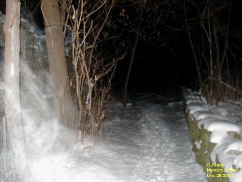 ![]() ![]() In many of the photos around the house we got nothing to really report so we decided to leave and take the manmade stairs going up the side of the hill to the driveway. In this photo another ORB got caught on film. ![]() Once we got to the top of the laneway, by the entrance there is an old ruin of a home. This home we guessed must be from the early 1800's. From the trail markings it appears to be along part of a local walking trail. ![]() There is a narrow path that leads by the old homestead and to the left you can see ecto mist starting to form. ![]() This photo was taken of what would have been at one time an entrance to a cellar. There was a hole in the ground that had been filled in by rock. We are guessing that it was part of a root cellar. Notice the strange ecto mist forming over the entrance. ![]() ![]() ![]() I snapped this picture just to show what the old homestead looked like now. Quite a piece of history. It seems we had a lone orb watching from the tree branches. ![]() When I clicked my picture Cathy said she'd seen something in the flash so she clicked a picture and came up with this ecto mist forming. ![]() Cathy wandered back along the trail and clicked off a few more pictures and captured a bit of ecto mist hovering on the left. ![]() Just a bit farther back on the trail Cathy came up with this little swirl of ecto beginning to form. It seems to be moving from the right to the center of the picture. ![]() Mystery House Page 1 Mystery House Page 2 Mystery House Page 3 Mystery House Page 4 Mystery House Page 5 Mystery House Page 6 Mystery House Page 7 Mystery House Page 8 ![]() ![]() ![]() |