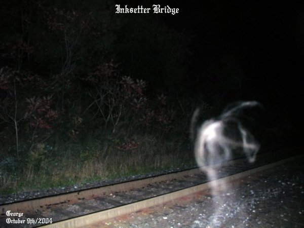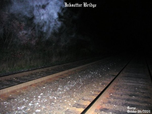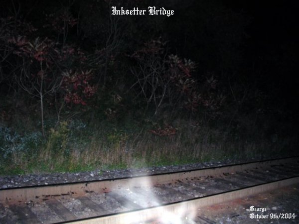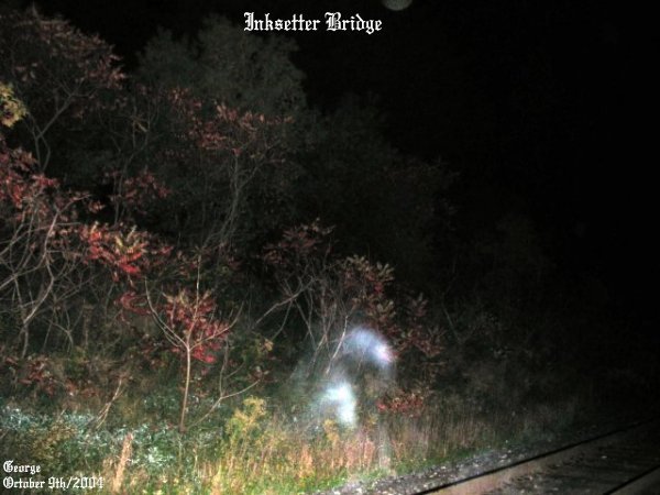 ![]() ![]() The energy you see coming from the bush almost appears as a person crawling from the bushes near the tracks, showing only a part of the arm and shoulder and head of a person. ![]() Right near the spot where Don had died there was a strong ecto form taking shape on the track just ahead of where I was standing. ![]() Two forms of energy on the tracks, in what appears as that of two people running towards one another. Again in these ecto form patterns there was strong energy as indicated by the colors within the mist. ![]() Just ahead of me in this picture, another form of ecto mist on the track. ![]() Right between the two tracks, a shape of a person taking on form just ahead of me when I took this picture. ![]() Ecto plasm forming just to the top left, hovering above the tracks in this photo. ![]() You can just make out Steve on the other side of the ecto mist that was forming near him on the tracks. This was a good night for an investigation to say the least. We got good results with a sense of something near us, and seeing dark figures crossing the tracks just ahead of us. There was a dead silence to the area and really weird cloud formations above us. Trees would start to sway back and forth for no reason, for there was no wind. And we all heard soft whispers in the area. We will be sure to return to this area for further study..... June 19/2004 (2) June 19/2004 (3) June 19/2004 (4) August 6/2004 (1) August 6/2004 (2) October 9/2004 (1) October 9/2004 (2) October 9/2004 (3) October 9/2004 (4)