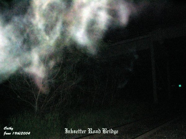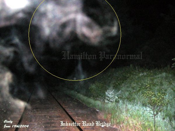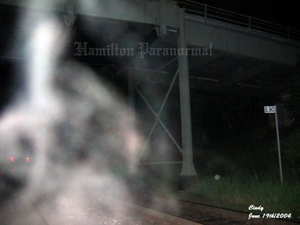 ![]() ![]() In the next picture I took, the form that was in the last photo seemed to have moved upward just ahead of me as indicated in this photo. ![]() ![]() ![]() Another energy form that appeared to be that of a person standing by the left of the tracks. It also appears as though this energy form was holding onto something at the time the picture was taken. ![]() ![]() It appears as though the spirit form she had captured in the last photo was rising upwards in front of the bridge. ![]() You can see Cathy just to the left of the picture. Cindy told her that she had thought she saw something near her and took this picture. Sure enough Cathy had someone behind her taking on a form of a person with their arms in front of their body. ![]() In this photo, to the right, you can see some strong activity taking place. In the center of the ecto mist you can see a red energy form taking on a shape of a person that appeared to be coming down to the tracks. ![]() Just ahead of Cindy there was a strong energy form that seemed to be hovering above the tracks. ![]() In this picture, where I made a circle, it appears as a snout of an oxen that was forming just above the tracks in ecto form. June 19/2004 (2) June 19/2004 (3) June 19/2004 (4) August 6/2004 (1) August 6/2004 (2) October 9/2004 (1) October 9/2004 (2) October 9/2004 (3) October 9/2004 (4)