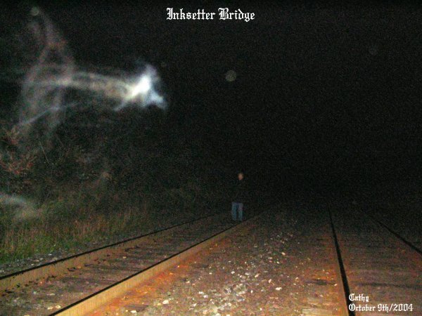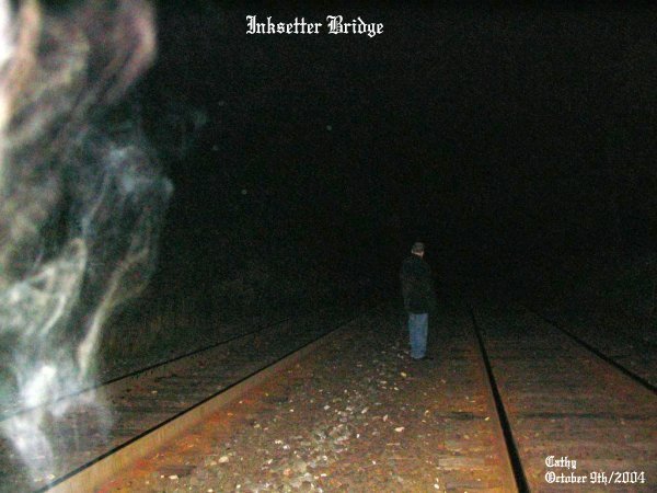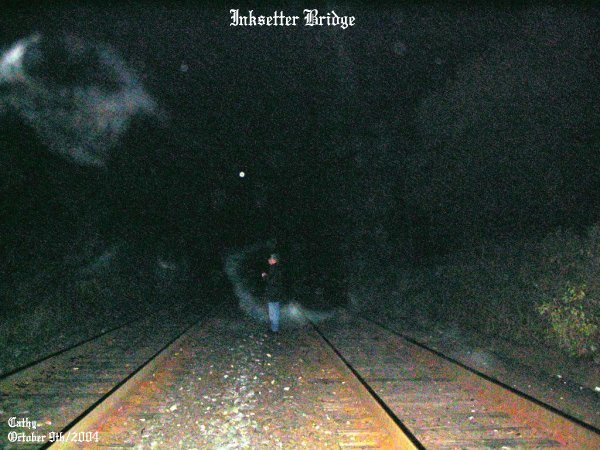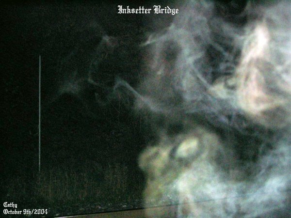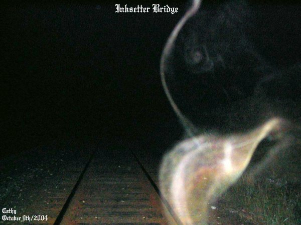 ![]() October 9th/2004 Pics Taken: 674 Pics Used: 31 Length of Investigation: 3 1/2 hours The pictures that are shown in this investigation have what we believe to be real paranormal content. This of course is our OPINION ONLY. We do this as a hobby, not as a business. It is up to the individual to decide for themselves if what we had captured on camera is real or not! All pictures taken were witnessed by those in attendance while they were still on the camera. With that said we hope you, the viewer, enjoy your visit to our site. Steve called and asked to go out to the old Inksetter Road Bridge for an investigation. We went out as a group to re-visit the old bridge with myself, Cathy and Steve. When we arrived at the location and got to the spot under the bridge we could all sense something in the area. The bushes kept moving around us and there was no wind. We could see shadows moving around us and we would see something white dart across the tracks from time to time. Steve had seen black shadows moving on the rails ahead of us and many times he had seen white strands of ecto go across the tracks. It was the same for Cathy and myself. We knew we were not alone and had the sense of being watched. ![]() To the right side of the photo you can see some faint ecto plasm in the shape of a steer's head complete with one large eye. Just below that there are two faces that were forming by the white strands of ecto mist. ![]() This picture shows vibrant strands of color that represents energy. Just to the center of the strands you can see a faint image starting to form into something. This picture was taken looking down the tracks. ![]() This swirl of energy formed right near Cathy as she took this picture. Notice the colors in this wave of energy. This was a great picture of a spirit that was very close to Cathy. ![]() These energy forms were that of ecto mist and ecto plasm as well as an indication of strong energy forming into more than one spirit. At the time this photo was taken we could all see the strands of energy with the naked eye. ![]() Ecto mist with some light energy color showing. Just what it was going to be is anyone's guess.... ![]() You can see Steve standing on the tracks. He was sensing a lot of different things in the area and as seen in the photo you can see something was right by him as he was trying to figure out why the bushes were being ruffled to his left. ![]() Steve was like a magnet for these entities that were in the area. In this photo you can see a burst of energy come from where he was commenting on the bushes moving as if a breeze was blowing through them. ![]() Steve was still in the same area and in this photo to the left you can see an energy form of a spirit that had a tinge of red to it. Cathy had taken this picture and just after it was taken she had said she had the sense of something applying pressure to her left shoulder as if someone had a firm grip on it. June 19/2004 (2) June 19/2004 (3) June 19/2004 (4) August 6/2004 (1) August 6/2004 (2) October 9/2004 (1) October 9/2004 (2) October 9/2004 (3) October 9/2004 (4)
