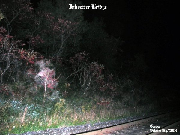 ![]() ![]() This picture I had taken when we arrived, shows two entities that were forming to my left. ![]() This energy form shows as some kind of animal jumping out from the bushes to my left. The form shows as strands of ecto plasm taking on the shape of an animal. ![]() I always speak of ecto plasm showing as blue strands of energy or mist. In this photo I have never encountered such strong energy of ecto plasm that showed so brightly as this one. ![]() Another energy form taking on a shape to my left, with again very vibrant energy showing in many colors. ![]() You can detect the rainbow colors that show in ecto puff cloud mist that appears in this picture. Also there was a very strong vibrant ORB showing in red near the top left that was in motion. ![]() This ecto form almost had a defined face that was taking on form in the top right hand corner, with an ecto strand of energy that seemed to come from the head. ![]() In this photo it shows a head of a person attached to half a body to the form in the bush by the tracks. ![]() In the same area a few minutes later, after the last picture, shows a formation of ecto mist scattered along the ground. June 19/2004 (2) June 19/2004 (3) June 19/2004 (4) August 6/2004 (1) August 6/2004 (2) October 9/2004 (1) October 9/2004 (2) October 9/2004 (3) October 9/2004 (4)