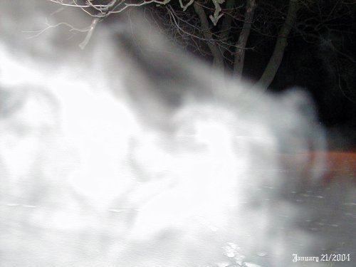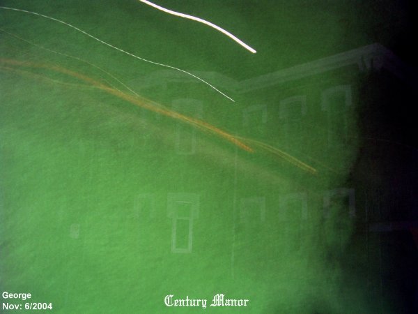 ![]() The pictures that are shown in this investigation have what we believe to be real paranormal content. This of course is our OPINION ONLY. We do this as a hobby, not as a business. It is up to the individual to decide for themselves if what we had captured on camera is real or not! All pictures taken were witnessed by those in attendance while they were still on the camera. With that said we hope you, the viewer, enjoy your visit to our site. January 21st/2004 Pictures taken 327 Length of Investigation: 1.5 hrs This night of January 21st it was only myself and Cathy that went back to conduct another investigation. Again at the back of the manor we felt uneasy and there was a sound as if someone was hitting a pipe right near us.There was no wind and we did look around to where this noise was coming from and could not find anything that would explain it. ![]() This picture was taken looking back to the old Barton building from the back of the manor. As you can see there was ecto mist that appeared close to the camera. I have tested this picture and on the outside of the mist there was a band of red all around it.Within the mist something was forming into a shape. ![]() Again looking back from the manor itself to the old Barton Building, you can make out a slight trace of ecto mist around by the old foundation where the horses would have been kept in times gone by. ![]() Another picture of some stong energy hovering just above the ground.You can also see some energy to this mist on the left hand side, near the ground, that appears as faint red mist. Again this picture was taken looking back to the old Barton Building. The pictures that are shown in this investigation have what we believe to be real paranormal content. This of course is our OPINION ONLY. We do this as a hobby, not as a business. It is up to the individual to decide for themselves if what we had captured on camera is real or not! All pictures taken were witnessed by those in attendance while they were still on the camera. With that said we hope you, the viewer, enjoy your visit to our site. April 27th/2004 Pictures taken 223 Length of Investigation: 1.5 hrs We once again headed out to the Century Manor to conduct another investigation. This time Cindy was with us. This night neither Cathy or myself came up with any pictures, however Cindy managed to capture two good photos this night. ![]() In the above photo that Cindy had taken she caught some strong ecto mist forming near the back of the manor.We could not get to close to the manor for it was under construction with a big frost fence around it . In this photo the energy form seemed to be taking on a shape at the time this picture was taken, again please notice the vibrant color within the mist.This would indicate that this energy form of a spirit was at its strongest point. ![]() Cindy managed to capture another energy form up by the second floor to the building, just above where I had captured an image of a woman standing looking out the window in the day time of December 24th/2003. This night was uneventful for Cathy and myself as to getting any pictures. But Cindy got two good photos. Century Manor holds a lot of paranormal activity, but again most of the energy forms are taken at the back of the building. This would indicate that most pictures would be caught on camera if one took them at the back of the building.... The pictures that are shown in this investigation have what we believe to be real paranormal content. This of course is our OPINION ONLY. We do this as a hobby, not as a business. It is up to the individual to decide for themselves if what we had captured on camera is real or not! All pictures taken were witnessed by those in attendance while they were still on the camera. With that said we hope you, the viewer, enjoy your visit to our site. November 6th/2004 Pictures taken 223 Length of Investigation: 1 hr Steve from Royal Ontario Paranormal (from Toronto) came up and wanted to do an investigation at the old Century Manor. Upon our arrival Steve felt as though this building had something watching him. After about 20minutes I had gone to the front of the manor and started to take some pictures when I felt something brushing my hair and had a sudden urge to get back with the group. ![]() This was a strange photo and I do use digital so it is not that bad film in the camera. I had seperated from the group when this picture was taken and something brushed my hair so I took a picture and came up with this. I have never encountered a green mist that almost blocked out the manor . Also there were what appears as energy rods shooting across the photo, one of the energy rods showed as red. Energy rods from a spirit are not uncommon but are hard to capture on camera. ![]() Near the back north corner of the Manor is where everyone feels dizzy or sick and has an uneasy feeling to it at any time. In this picture you can see some ecto mist that was forming near the corner of the building. This also had some color to the ecto mist that had some energy to it. ![]() I kept this photo for it appears as though the north side of the building seemed to be leaning out towards the back. I had taken other photos this night and not one of the photos showed this effect. It was a strange shot to say the least and at first I thought maybe it could be the drain pipe that gave this effect. The only problem is that the other pictures taken this night did not give this effect. Century Manor 2 Century Manor 3