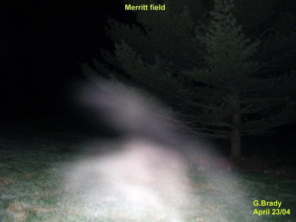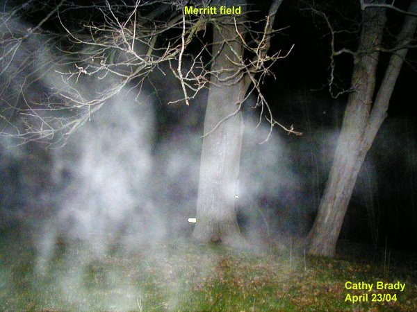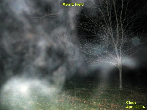 ![]() Ancaster, Ontario ![]() I wandered down to where the trail splits for I kept seeing movement around the area. In this photo I managed to capture a wisp of blue ecto plasm crossing the trail just ahead of me. ![]() In this photo it shows some ecto mist forming just ahead of me on the trail not too far from where the other photo was taken. ![]() Cathy had taken this picture of some ecto mist forming by the small hydro box near the trail. ![]() Cindy was with us taking her pictures. She had mentioned that she could see flashes of faint light around this one tree that sits near the split of the trail. She caught this ecto form of what appears to be a dog standing near the tree looking at her. The dog shape looks almost like that of an afghan hound or something similar. There was also a trail of ecto mist leading from the apparition of the dog that seemed to be heading upwards. ![]() This photo shows a lot of energy that appears to be taking the form of a person either running or walking in both ecto form and ecto plasm. One can see the different colors of the energy that was taking form at the time the picture was taken. ![]() In this photo if you look closely center left you can make out an image of a dog that seemed to be standing with its back to you, looking back over its shoulder at the camera when this picture was taken. ![]() This photo shows a strong puffy energy form that seemed to be in motion at the time this photo was taken. ![]() To the right of the picture, close to the ground, you can make out an energy form. To the left of the photo you can see ecto mist. The energy form on the right was interesting. Just what it was going to be is anyone's guess. It was a very interesting investigation this night. We all had a sense of something watching us and we saw flashes of white zipping around the trees where the trail splits up into two paths. We also heard low strange noises in the area. There were warm and cold spots, and sometimes a strange breeze would flow by yet no tree branches were moving. We will conduct some history to this place in the near future and maybe we can come up with some answers as to why this area may be host to some spirits that seem to occupy this area. ![]() April 23, 2004 (1) April 23, 2004 (2) ![]() ![]() ![]() |