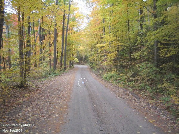 ![]() ![]() This picture was taken on an old logging road in Bancroft Ont. while on a fishing trip. The time was around ten am.We stopped to take a picture of the fall colours and happened to catch this orb. Our Comments: This photo was tested and shows a blue ORB which represents an angel spirit on the road. Spirits can show themselves in the day as well as indicated in the photo. Great work Mike!!!!