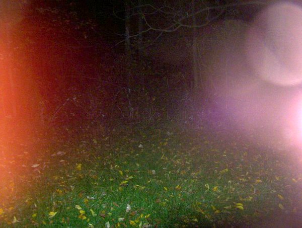 The red glare on the left we believe to be caused by the flash glare from a finger near the lense. But the energy to the right showed vibrant colors.