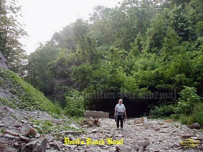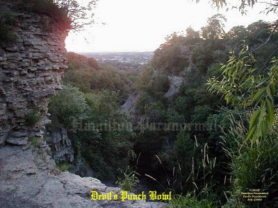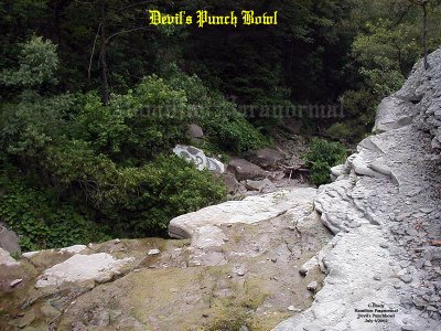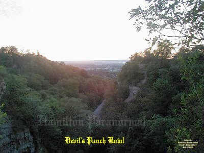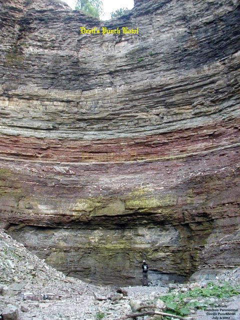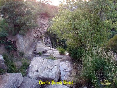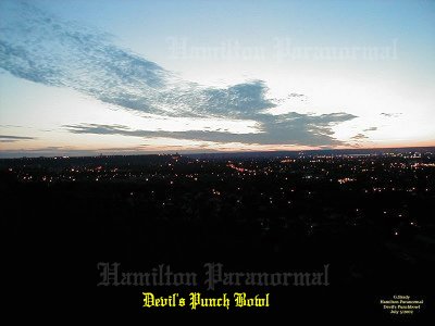 ![]() Our Experiences: ![]() Here is a view of the cross during the day from the creek bed at the bottom of the gorge. ![]() A view from the edge of the waterfall cliff, looking out into the gorge of Devils Punch Bowl. ![]() As night was approaching we could from, time to time, feel a spider web sensation even when we were standing still. This is a view from Ridge Road looking down at the dry creek bed that leads over the edge into Devil's Punch Bowl. ![]() In this photo it was dusk overlooking the gorge of Devil's Punch Bowl. What a beautiful night to spend overlooking the city. No wind, no clouds, and no rain to spoil the view. The reddish tint you see was created by the glare of the sunset, so no paranormal activity there. ![]() Here is a breathtaking shot from the cross at Devil's Punch Bowl, overlooking the city, just as the sun was setting... ![]() We left the tunnel and after following the trail towards the gorge. We learned that there was a smaller waterfall on the way. In this photo notice the drop made through the passage of time. The trail is very narrow in places and could be dangerous if it were wet. So it should only be taken when the trail is dry. At this point we were about halfway to the Devil's Punchbowl. ![]() We all made it safely to the top of the first little gorge and I had to take a picture of the rock that someone had spray painted as a skull smiling. You can see this from the lookout where the cross is located. ![]() We left the lower gorge and made our way towards the Devil's Punchbowl basin and as we approached we were in AWE. All of a sudden we realized how small we were in comparison to the basin of the Devil's Punchbowl. It was a site to see, one you had to see in person to realize how massive it is. ![]() This picture shows the rocky creek bed running down from the dried up water fall from the top of Devil's Punchbowl. Cathy at this point was tired after the hike back to the basin. ![]() Daniel and Matthew were looking up at the water fall drop. When you are at the base of the drop it really makes you think how small you are in this basin. While we were in the basin there were mini rock slides from time to time coming from the south wall. Many times we ran for cover whenever we heard the rock slides. July 5/2004 August 9/2003 August 9/2004