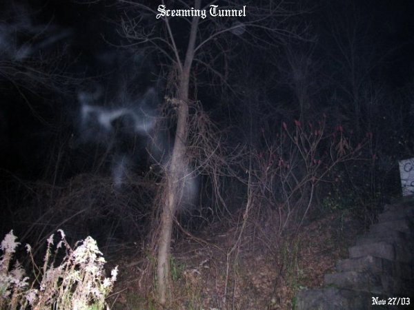 ![]() The pictures that are shown in this investigation have what we believe to be real paranormal content. This of course is our OPINION ONLY. We do this as a hobby, not as a business. It is up to the individual to decide for themselves if what we had captured on camera is real or not! All pictures taken were witnessed by those in attendance while they were still on the camera. With that said we hope you, the viewer, enjoy your visit to going through this investigation. Date November 27th/2003 Pics Taken 315 Pics used 8 We returned to the Screaming Tunnel to conduct another investigation to the area.We had a small party of 12 folks that came out with us this night and we all had an experience by hearing things just at the back of the tunnel that could not be explained away easily. It was a clear night for this investigation. ![]() The area at the back of the tunnel had some weird noises that seemed to be not too far from the group. In this photo you can see some vibrant energy near the out laying area by the woods. Some ecto plasm seemed to be just floating between the trees . ![]() About twenty five feet ahead of me there was another strand of energy that I managed to capture of the same type that I had caught on camera about 20 minutes ago as seen in the first photo I had taken. ![]() I had taken a shot just above some of the folks that came out with us and managed to capture some ecto mist that seemed to have a lot of energy to it as indicated by the color within the mist itself. ![]() I found that most of the activity this night seemed to be around the trees at the back of the tunnel. I took many pictures and came up with nothing. About an hour into the investigation I then captured this ecto mist hovering high into the trees at the back of the tunnel. Again one can see the energy to this ecto mist by the colors within the mist. ![]() About 15 minutes later I captured this odd shape ecto mist. It was in a form that reminds me of two racoon heads hovering high above. There was evidence of other activity as seen in the picture. Some of the folks left at this point for some had to go to work the next day. ![]() About 20 minutes after the last picture was taken I heard some strange noises coming from the woods and I took a picture in that direction and came up with more activity of ecto mist that was forming into something. ![]() This ecto mist that was captured on camera had some energy to it. Just what it was going to turn into is anyone's guess.We were down to just a handful of people left on this investigation when I managed to capture this form of energy. It appeared that whatever spirits occupy this area they seem to come a bit closer to those in the area. ![]() About the time when this photo was taken we had spent about 2 1/2 hours investigating this area. Just as we were ready to head out I took this picture towards the back of the tunnel.Two strands of ecto plasm were forming just above the tunnel itself. Is there activity to the Screaming Tunnel, Yes there is. I have found that the wooded area at the back of the tunnel has the most activity to it at night. As for inside the tunnel itself we did not really get any pictures of a paranormal nature. The area right at the back of the tunnel is the place to take pictures.We will return sometime in the future to further our investigations to this area. ![]() Screaming Tunnel Page 1 November 27/2003 ![]() ![]() ![]() |