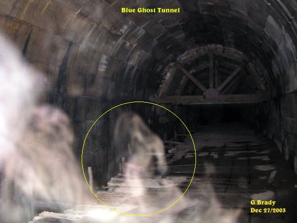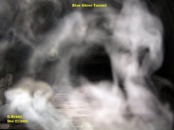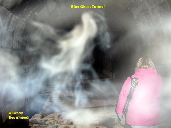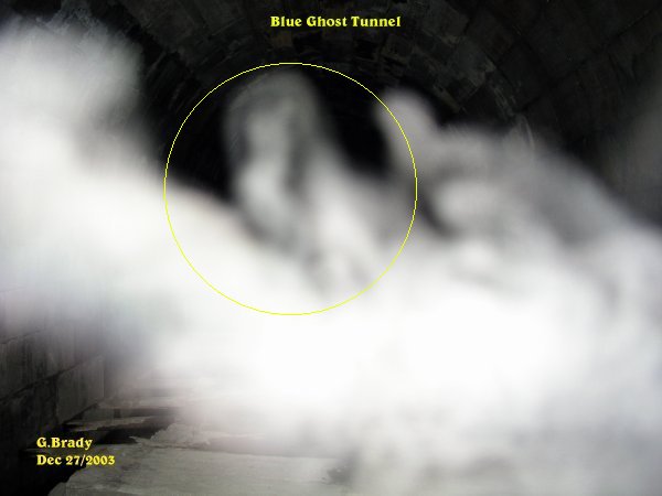 ![]() The pictures that are shown in this investigation have what we believe to be real paranormal content. This of course is our OPINION ONLY. It is up to the individual to decide for themselves if what we had captured on camera is real or not! All pictures taken were witnessed by those in attendance while they were still on the camera. With that said we hope you, the viewer, enjoy your visit to our site. Date: Dec 27th/2003 After our trip out to the Blue Ghost Tunnel last time our backs were sore from standing so long. We had gone out and bought some camping stools and we had bought one for Cindy and her daughter as well. Cindy came over to our place and we gave her the stool. Cindy wanted to go out to the BGT again saying, "I won't end up with a sore back this time!" So after talking about our experiences there we decided to go back to the Blue Ghost Tunnel for another investigation. When we had arrived at the tunnel it was strangly quiet and it almost felt forbidden to enter the tunnel on this night. We all felt we were not welcome to enter into the tunnel, but we proceeded anyway.... ![]() Cindy went on ahead of me and I took this picture showing a strange ecto energy form right near her as she was taking her picture in the tunnel. In the photo you can see the camping stool strapped to Cindy's back. ![]() This photo showed a strange ecto mist that was forming just ahead of me. What was interesting about this photo was in the center of the mist it appears as though a lady was forming at the top, with dark hair. What we could not figure out was what this lady was riding on. I have drawn a circle around the figure to show what I see in the photo. ![]() Shortly after the previous photo, this showed up. Notice that in the center of the ecto mist it was very clear. ![]() I was not going to show this photo, but then I decided to show it anyway. This photo was taken looking back to the entrance of the tunnel. There appears to be something in the distance coming into the tunnel. ![]() This was an interesting photo. Notice how bright the ecto was near the beams that appear as a bright circle of light. Then the two other entities nearest the camera. When we showed this picture to some of our friends they say it maybe the light from a ghost train that may have been coming from the other end of the tunnel. ![]() Near the support beams in the tunnel I took this picture. What caught my attention was the form of what appears to me as a mid size dog that was sitting up as if begging for a treat. I circled the picture of what I see. Was it in fact a dog ? I really could not say for sure, but it does look like a beagle type dog to me. ![]() Something was either coming towards me or something passing me in the tunnel. Whatever this was, it made itself known as indicated in this photo. ![]() A large energy form that was taking on some shape in the tunnel. Notice the green and blue within the form. This spirit had a lot of energy to it, showing in very vibrant color. ![]() About 10 minutes later taking a photo from the same spot, I had captured the above entity. There seems to be more spirit activity in the tunnel coming from the entrance. ![]() A few pictures later I caught another spirit moving around between me and the entrance of the tunnel. November 9/2002 August 23/2003 September 20/2003 (1) September 20/2003 (2) September 20/2003 (3) September 20/2003 (4) September 20/2003 (5) September 20/2003 (6) October 25/2003 (1) October 25/2003 (2) December 12/2003 December 13/2003 (1) December 13/2003 (2) December 27/2003 (1) December 27/2003 (2) December 31/2003 January 10/2004 (1) January 10/2004 (2) January 10/2004 (3) January 10/2004 (4) January 10/2004 (5) January 10/2004 (6) January 10/2004 (7) January 17/2004 (1) January 17/2004 (2) January 17/2004 (3) January 17/2004 (4) January 24/2004 (1) January 24/2004 (2) January 24/2004 (3) January 24/2004 (4) January 31/2004 (1) January 31/2004 (2) February 7/2004 February 14/2004 (1) February 14/2004 (2) February 21/2004 March 6/2004 (1) March 6/2004 (2) May 22/2004 July 10/2004 (1) July 10/2004 (2) July 10/2004 (3) July 16/2004 (1) July 16/2004 (2) August 14/2004 September 18/2004 (1) September 18/2004 (2) September 18/2004 (3) August 14 & 20/2005 BGT Closed