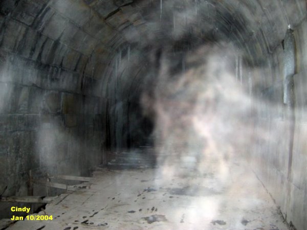 ![]() ![]() ![]() Cindy had made her way through the ice maze to reach the far end of the tunnel and took this picture looking back. The spirit energy that revealed itself is amazing, with a lot of energy color that showed itself with the ice as a back drop. ![]() Rick had just walked out to where the water was frozen at the back of the tunnel when Cindy had taken this photo. He was not alone out on the ice. ![]() Now this picture shows something that is not of this world. You can see a creature that appeared to be moving within the tunnel that had a long body to it, showing the head of the creature and from the head it shows what would be the vertebrae. It also shows faintly one leg that comes from the vertebrae. My guess would be if this creature were alive this leg would be how the creature moves along. ![]() This photo was taken sometime later than the last photo. Again the creature showed itself but further back this time from the camera. You can see the head and the vertebrae and now two tiny legs coming from the verebrae near the head of the creature. Its almost as if this creature seemed to be a part of the reptile family. But again this is nothing like what we know of from this world. We are still trying to figure out if there could be a gateway from our world to another realm of existance that is linked to the tunnel. At the beginning of taking photos of the tunnel we never encountered odd looking creatures. But now we discover that we are getting more photos of the unknown and things that cannot be so easily explained. ![]() In this photo it looks like a deformed skull. There was a train accident at the west end of the tunnel. Could this be one of the engineers that may have had his head smashed in from the wreck? ![]() In this photo it shows a form of a dog with its head looking back. It appears to be that of a doberman in ecto form. The form can be seen in the ecto mist from the bottom reaching to the center of the picture. ![]() Again another weird looking creature starting to form from the tunnel. This time the head of the creature is in the center with its legs out in front of it, the body going to the left in ecto form. ![]() I have circled the two entities. The one that is closest to the ground appears to be a cat, the larger one to the right appears to be a large dog, Both are faint but they are there. November 9/2002 August 23/2003 September 20/2003 (1) September 20/2003 (2) September 20/2003 (3) September 20/2003 (4) September 20/2003 (5) September 20/2003 (6) October 25/2003 (1) October 25/2003 (2) December 12/2003 December 13/2003 (1) December 13/2003 (2) December 27/2003 (1) December 27/2003 (2) December 31/2003 January 10/2004 (1) January 10/2004 (2) January 10/2004 (3) January 10/2004 (4) January 10/2004 (5) January 10/2004 (6) January 10/2004 (7) January 17/2004 (1) January 17/2004 (2) January 17/2004 (3) January 17/2004 (4) January 24/2004 (1) January 24/2004 (2) January 24/2004 (3) January 24/2004 (4) January 31/2004 (1) January 31/2004 (2) February 7/2004 February 14/2004 (1) February 14/2004 (2) February 21/2004 March 6/2004 (1) March 6/2004 (2) May 22/2004 July 10/2004 (1) July 10/2004 (2) July 10/2004 (3) July 16/2004 (1) July 16/2004 (2) August 14/2004 September 18/2004 (1) September 18/2004 (2) September 18/2004 (3) August 14 & 20/2005 BGT Closed