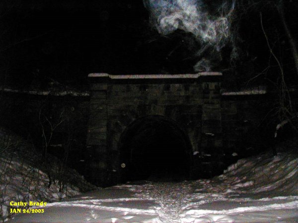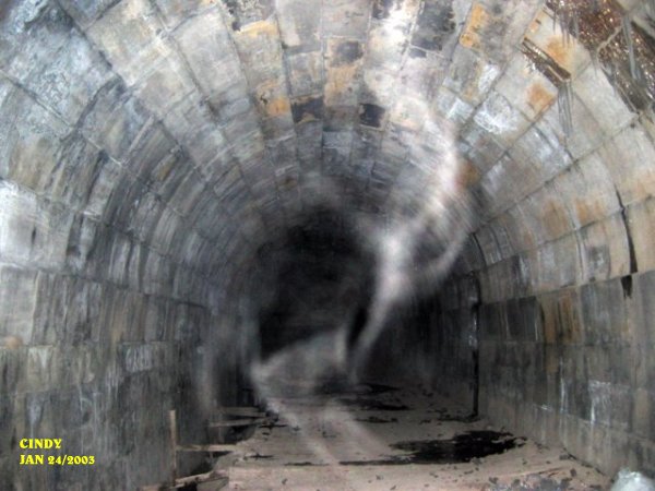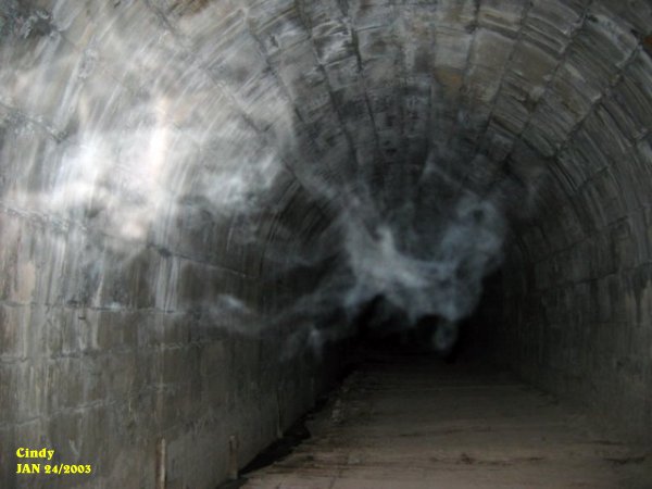 ![]() ![]() This shows an energy form showing itself in the middle of the tunnel from the floor up. ![]() Cindy's photo showing what appears as a dog to the right in light blue ecto plasm form. ![]() To the left of the tunnel entrance as we were leaving an apparation of a man's head was forming. This form had a lot of energy to it as shown by the vibrant color. It appears to be an older man that was taking shape. ![]() Cathy had taken this picture of a strange energy form just above the tunnel on the right hand side. We spent about 4 hrs. at the tunnel this night. The howling we heard earlier was spooky to say the least. Every time we would call the names of the dogs we would hear a bark or growl near the entrance. When the name Tucker was called out activity started up. Cindy had her hand grabbed by an unseen force and it seemed to pull her for a very brief moment. There were very low whispers that could be heard in the tunnel from time to time. Each time we visit the tunnel we always come away with something new. As for using the OUIJA board, we cannot validate to date any spirits that may occupy the tunnel, although we are still searching for verification. One thing is for certain, the names we call out that we had got from using the OUIJA board at home do bring about activity within the tunnel. Here are some of the names we use: Tucker, Mark, Paula, Wayne, Ryan. Here are the dog's names: Manny, Max, Molly, Casey. After calling out the dog's names, listen very carefully and see if you hear a bark or growl or howling near the entrance of the tunnel. Try using the names we use and see if anything happens on your investigation of the Blue Ghost Tunnel. November 9/2002 August 23/2003 September 20/2003 (1) September 20/2003 (2) September 20/2003 (3) September 20/2003 (4) September 20/2003 (5) September 20/2003 (6) October 25/2003 (1) October 25/2003 (2) December 12/2003 December 13/2003 (1) December 13/2003 (2) December 27/2003 (1) December 27/2003 (2) December 31/2003 January 10/2004 (1) January 10/2004 (2) January 10/2004 (3) January 10/2004 (4) January 10/2004 (5) January 10/2004 (6) January 10/2004 (7) January 17/2004 (1) January 17/2004 (2) January 17/2004 (3) January 17/2004 (4) January 24/2004 (1) January 24/2004 (2) January 24/2004 (3) January 24/2004 (4) January 31/2004 (1) January 31/2004 (2) February 7/2004 February 14/2004 (1) February 14/2004 (2) February 21/2004 March 6/2004 (1) March 6/2004 (2) May 22/2004 July 10/2004 (1) July 10/2004 (2) July 10/2004 (3) July 16/2004 (1) July 16/2004 (2) August 14/2004 September 18/2004 (1) September 18/2004 (2) September 18/2004 (3) August 14 & 20/2005 BGT Closed
