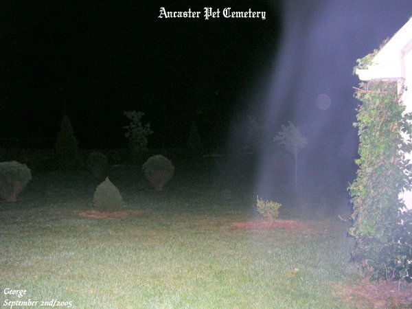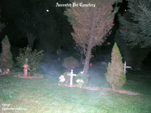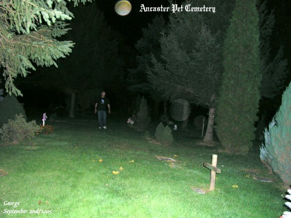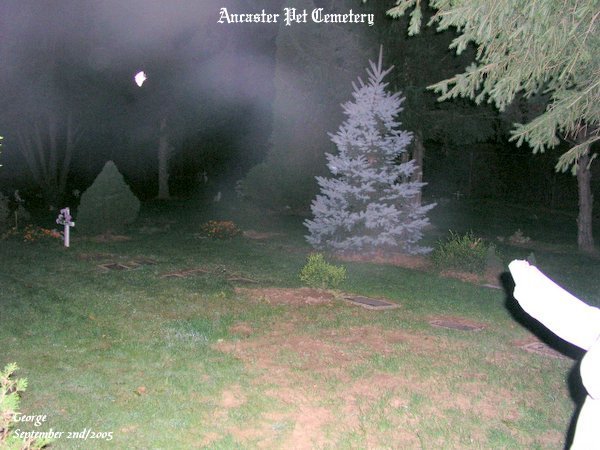 ![]() Date September 2nd, 2005 Pictures Taken 365 Pictures Used 4 Length of Investigation 2.5 hrs The pictures that are shown in this investigation have what we believe to be real paranormal content. This of course is our OPINION ONLY. It is up to the individual to decide for themselves if what we had captured on camera is real or not! All pictures taken were witnessed by those in attendance while they were still on the camera.Once we get back home we do download the pictures, then we test each photo that we intend to use on the site. Each picture that we present on our site goes through two stages. One being the negative test. The other, the posterize test, to show proper colored energy forms.You will also notice that we give a description of what we see in each energy form. Please remember, what we see in each spirit form is our OPINION ONLY. With that said we hope you, the viewer, enjoy your visit to our site. On September 2nd, 2005 we met up with Rob who wanted to go on an investigation at the Ancaster Pet Cemetery. Upon our arrival we entered through the gate that leads into the cemetery. As soon as we walked in we all felt a strange presence this night.We also saw a lot of movement of small shadowy forms within the cemetery grounds. ![]() In this photo you can see some blue ecto plasm that seemed to form a curtain, if you will, by the chapel within the cemetery. ![]() Here you can see Rob coming between the evergreen trees. At the time he was walking towards me he had mentioned that something seemed to be following him. As you can see Rob had something with him. Going just ahead of him was a very vibrant ORB with vibrant energy within it. ![]() ![]() Matthew was using Rob's EMF meter and the meter was spiking in the red. Seen in the photo you can see some ecto mist just ahead of Matt. We may not have gotten many pictures this night, but the feeling of the whole cemetery was well worth the visit.We had all seen a lot of small black shadows scurry along the ground, and we all heard sounds within the cemetery that could not be explained. We will return to the cemetery in the near future. Ancaster Pet Cemetery 2 Ancaster Pet Cemetery 3 Ancaster Pet Cemetery 4 Ancaster Pet Cemetery 5 Ancaster Pet Cemetery 6 Ancaster Pet Cemetery 7 Ancaster Pet Cemetery 8 Ancaster Pet Cemetery 9 Ancaster Pet Cemetery 10 Ancaster Pet Cemetery 11